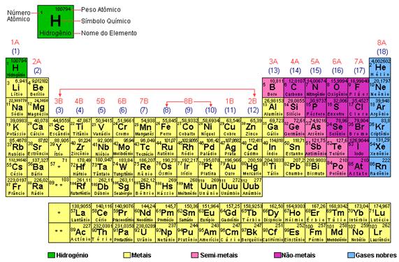 Já os elemenos que estão localizados no centro da tabela, estão separados também como :